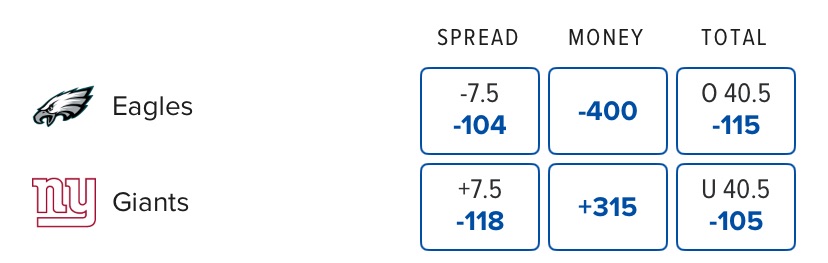 Week 6 is here and so is our Best Bet and matchup analysis. Last week, we fell 3 yards short on Thursday and it led to a tough rest of the week. Let’s turn the page as we are getting into the thick of the NFL season. We have the Eagles traveling up the turnpike to take on the Giants in the Meadowlands. I have gone through the available bets for tonight and picked the one that I think should be a lock. Let’s make some money!